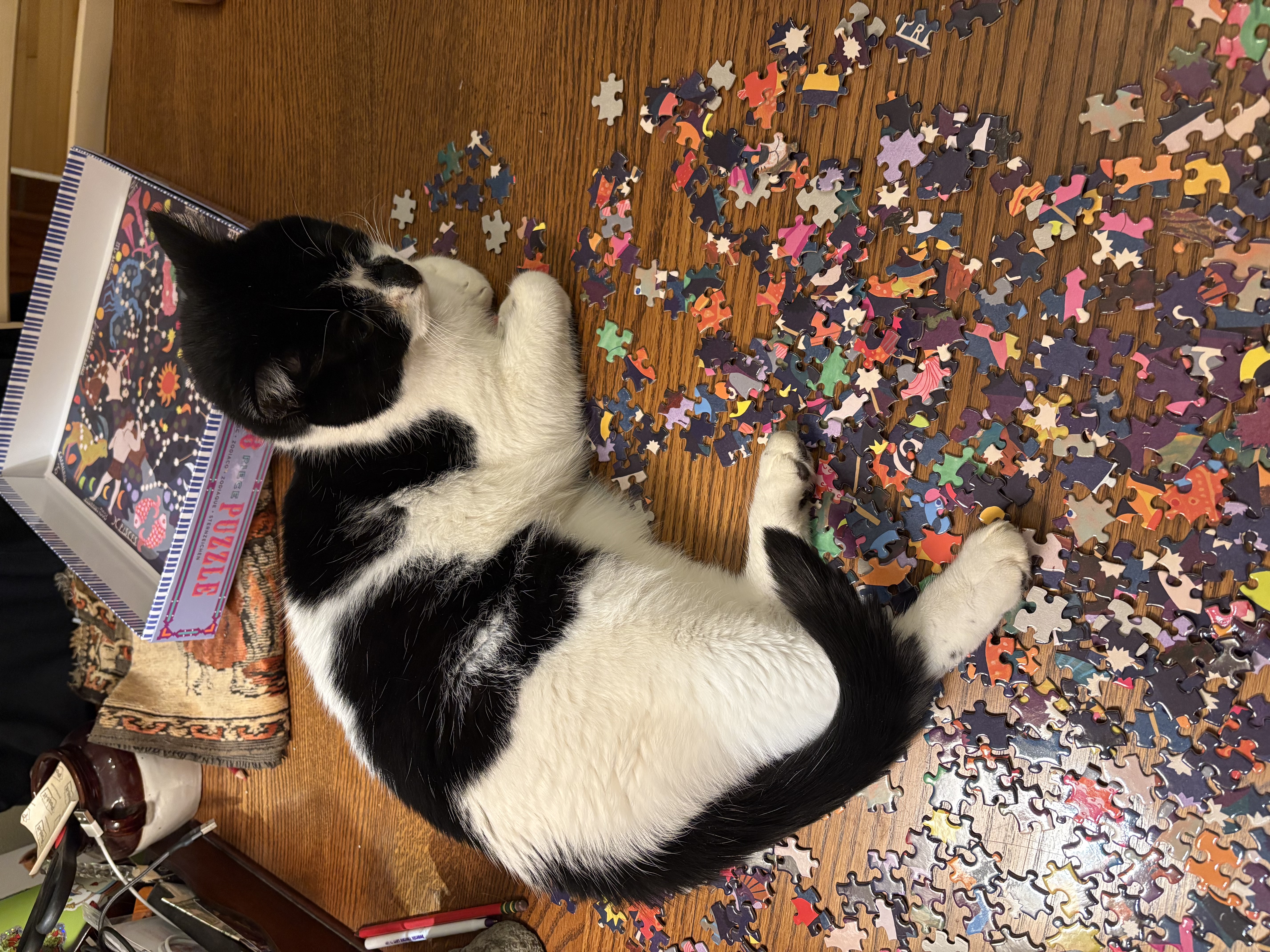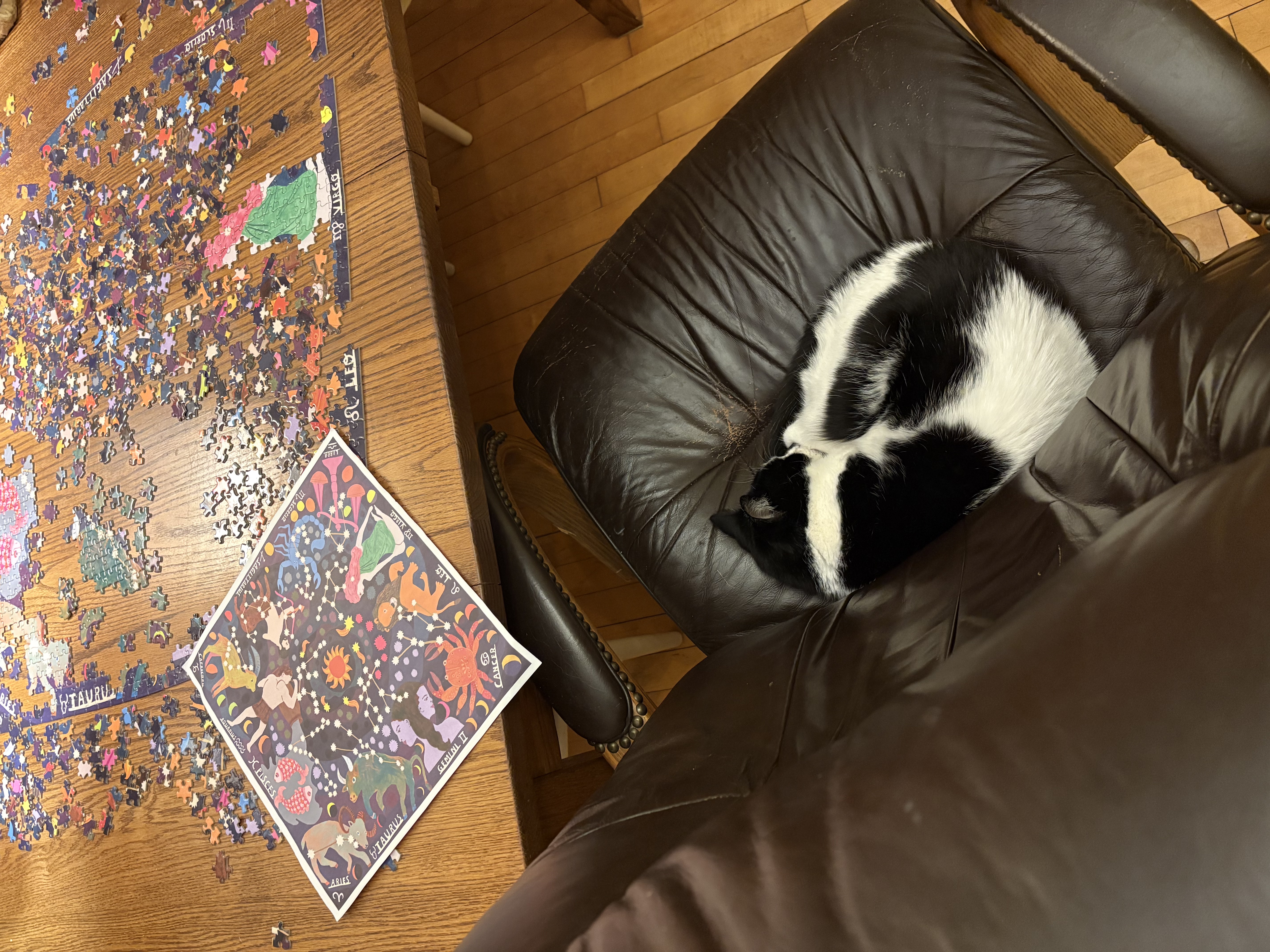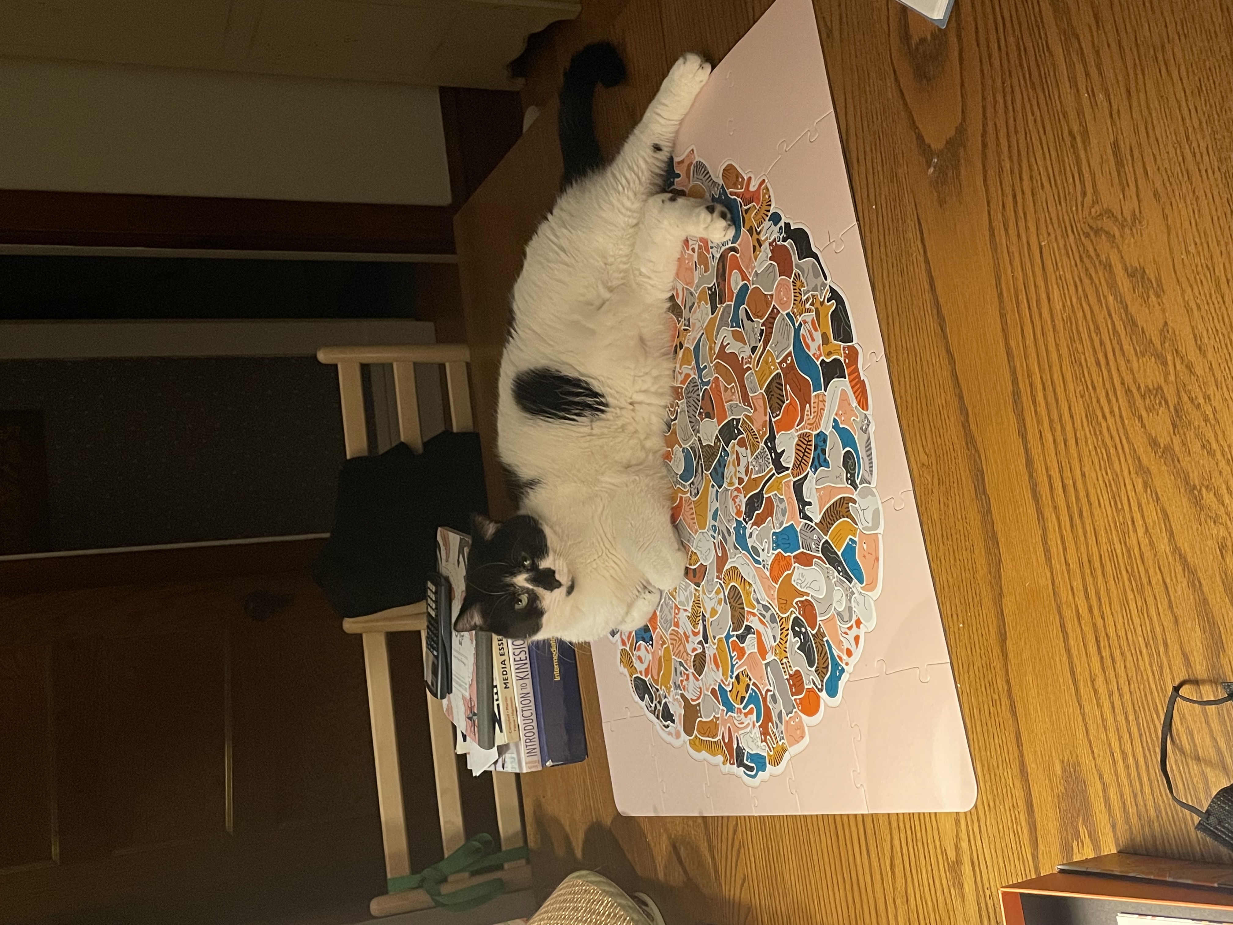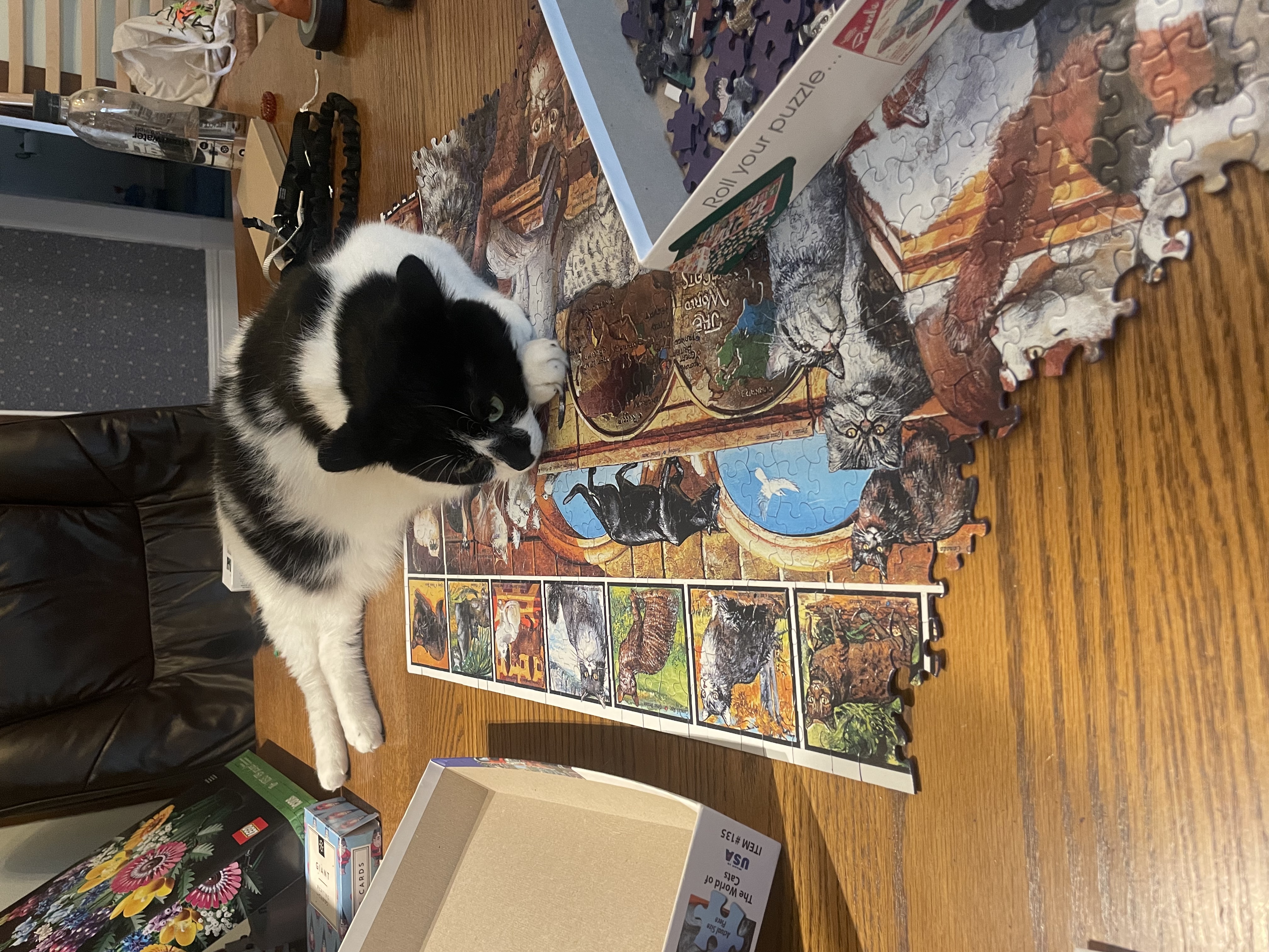 | Saving part of the puzzle by sitting on it |