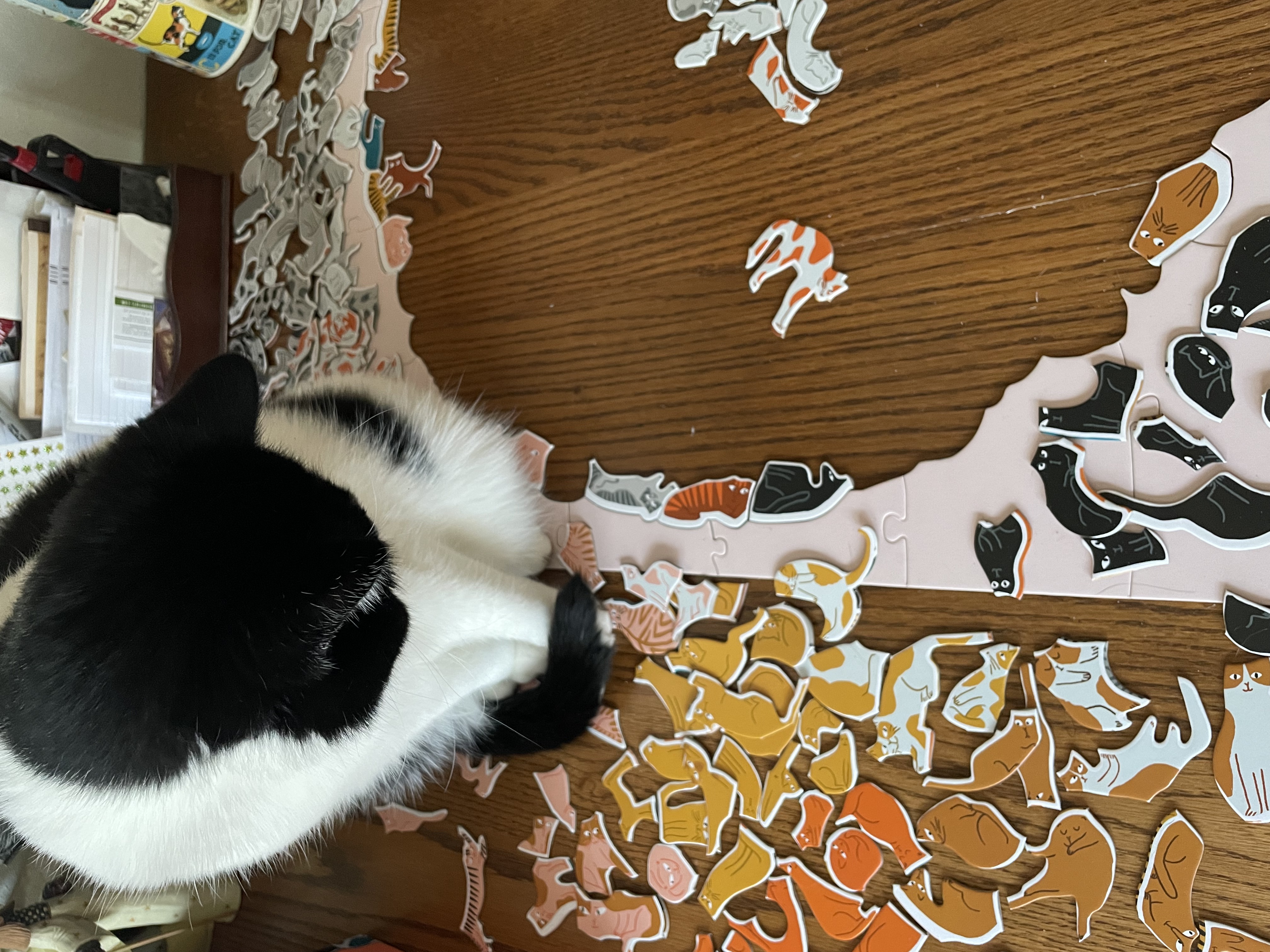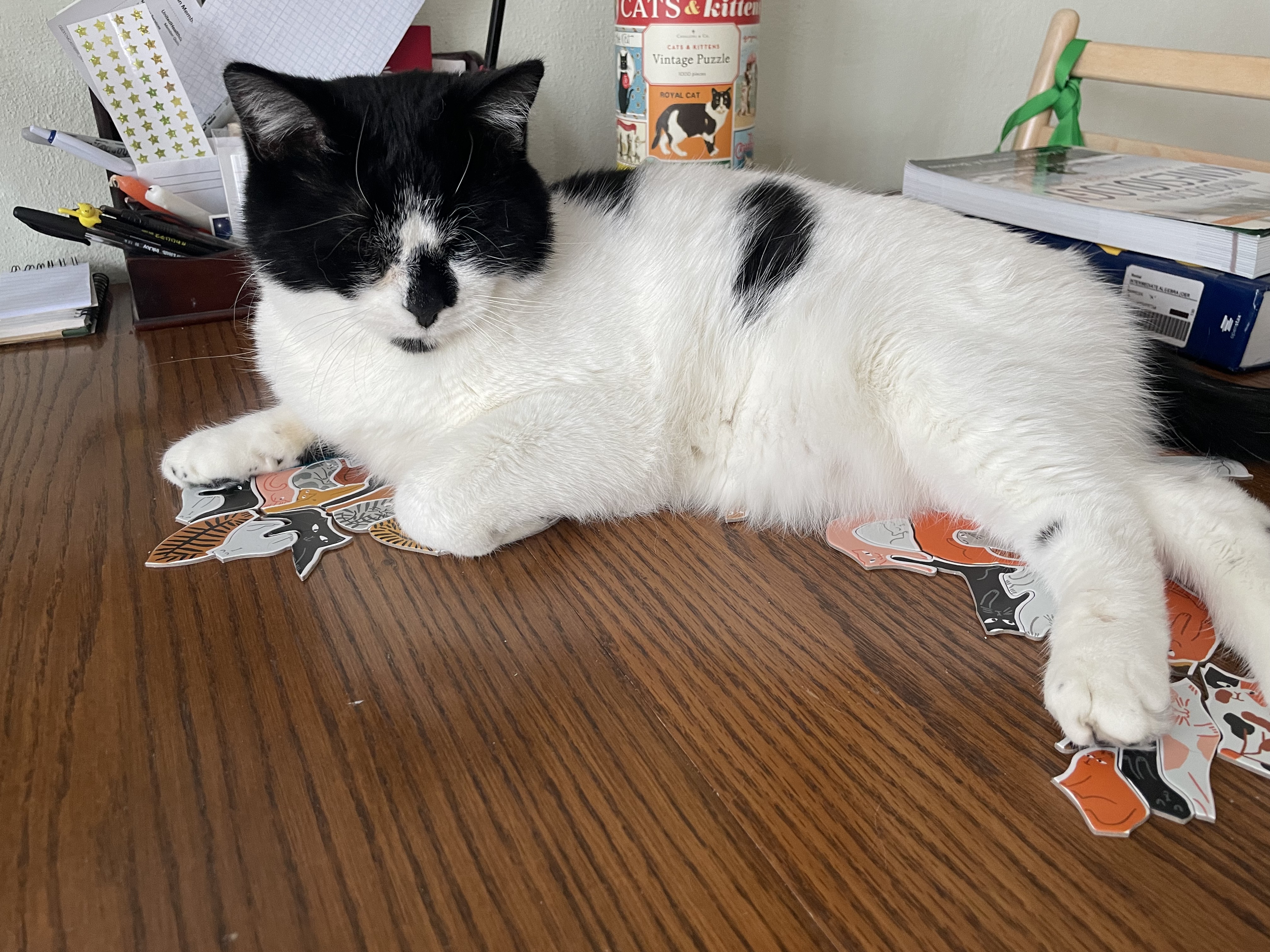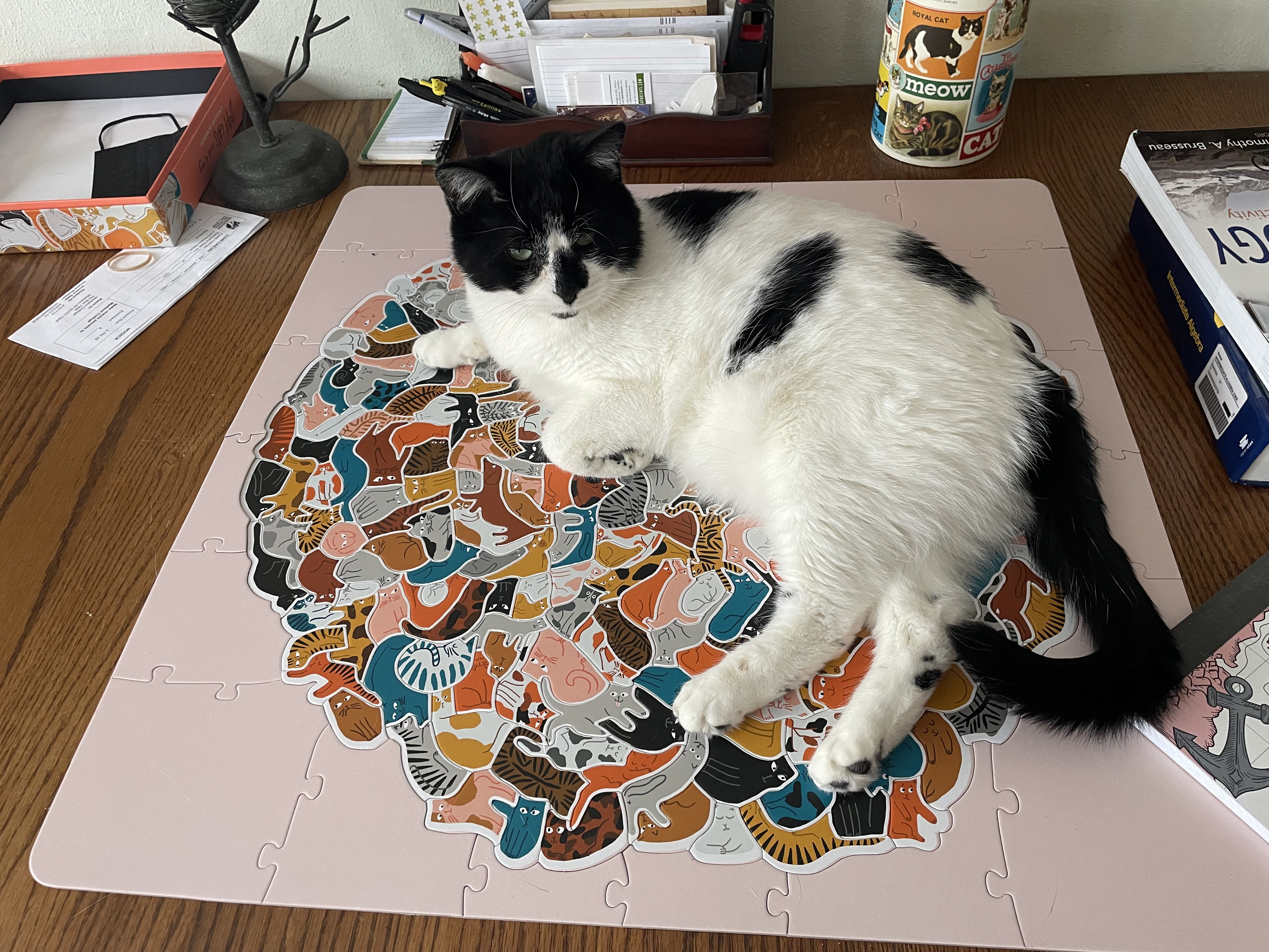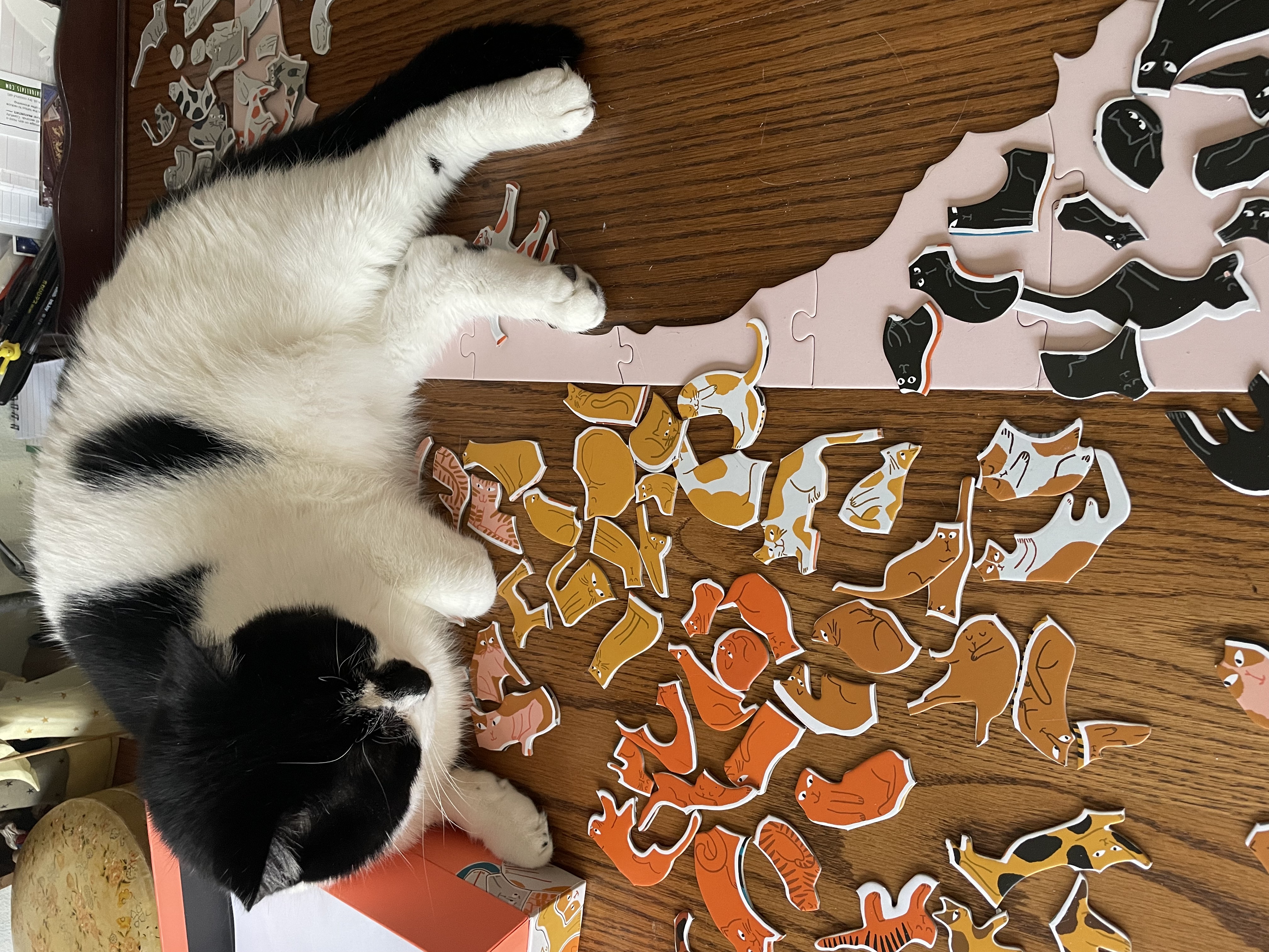 | Saving part of the puzzle by sitting on it |